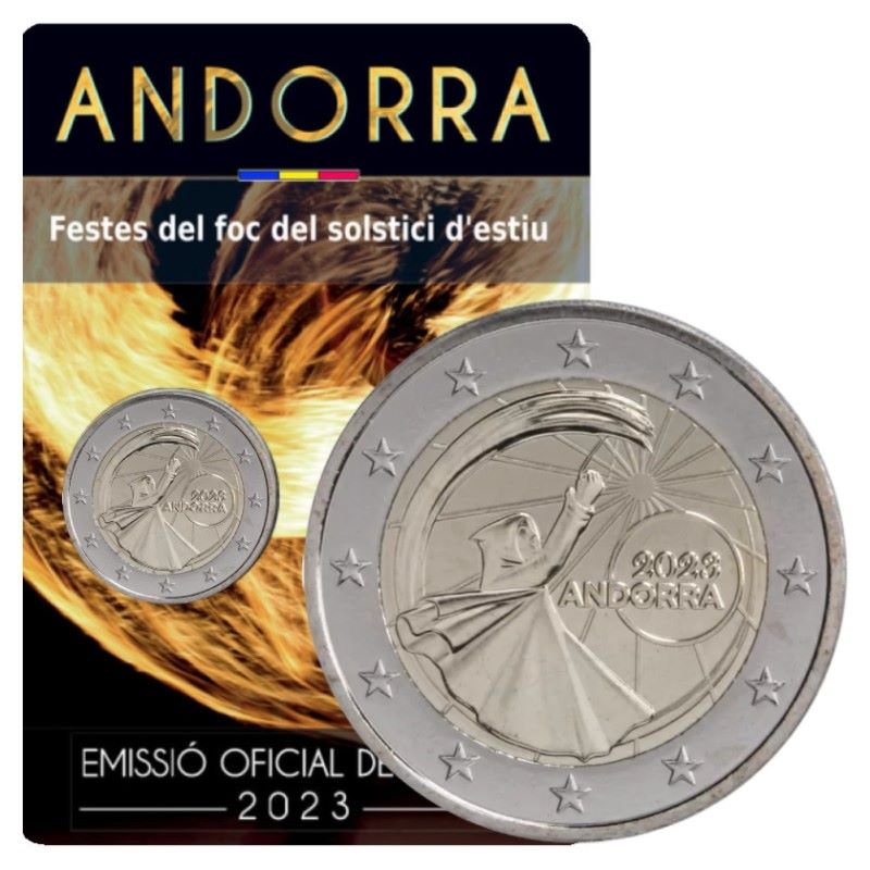 Andorra 2023 2 euro commemorative coin in bank coincard – Summer solstice fire festival (BU quality)