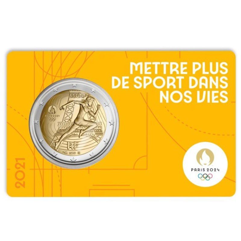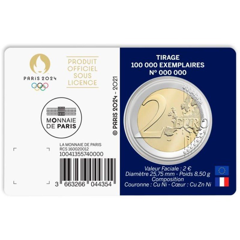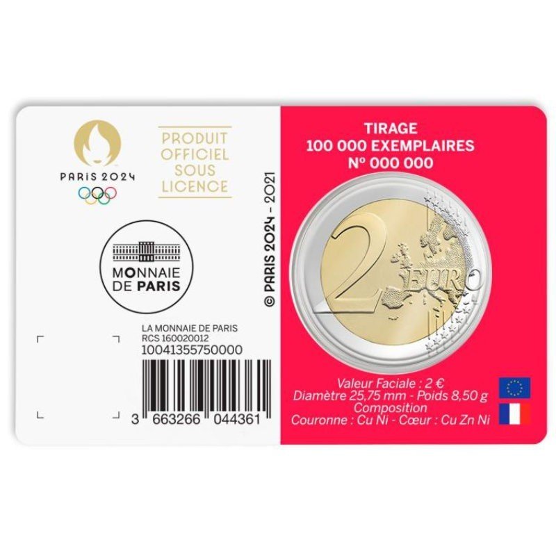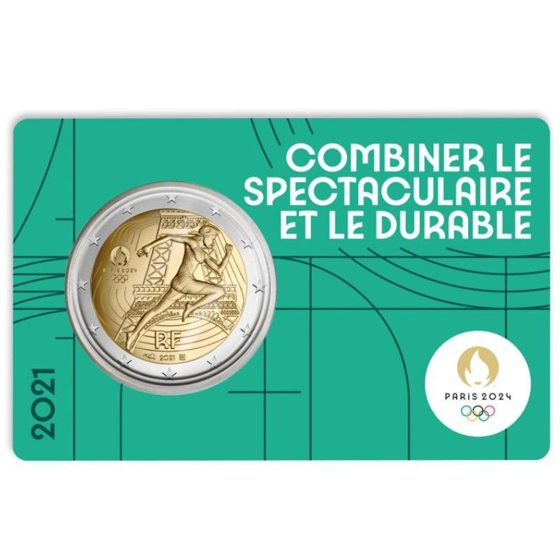Tags: 2 Euro, 2 Euros, 2021, BU, card, Coin, Commemorative, France, Olympics, Paris 2024