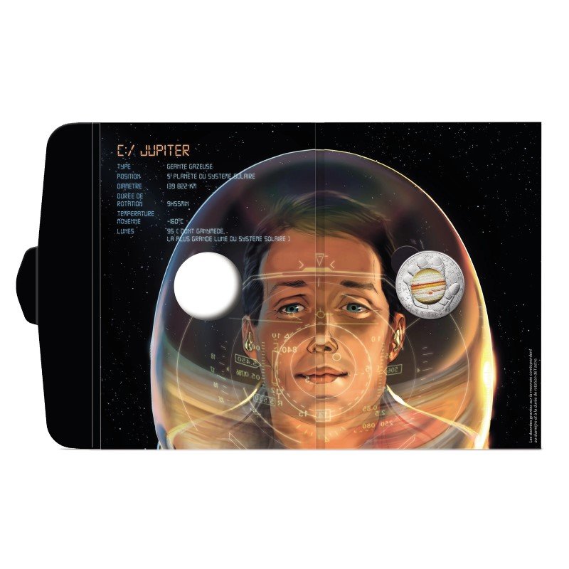 France 2025 10 euro silver collector colour coin in bank folder – A Space Odyssey with Thomas Pesquet*Jupiter (BU quality)