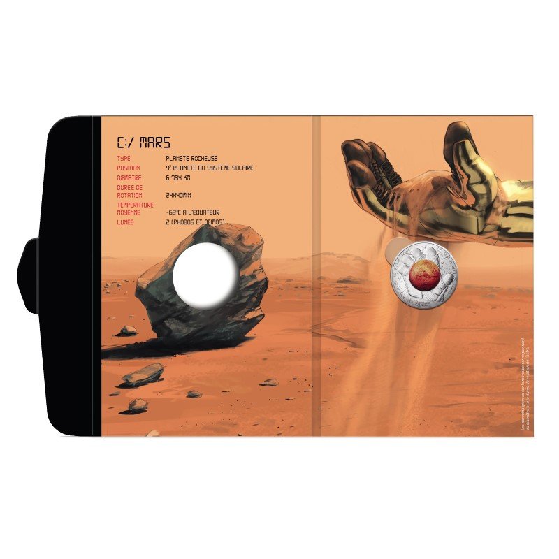 France 2025 10 euro silver collector colour coin in bank folder – A Space Odyssey with Thomas Pesquet*Mars (BU quality)