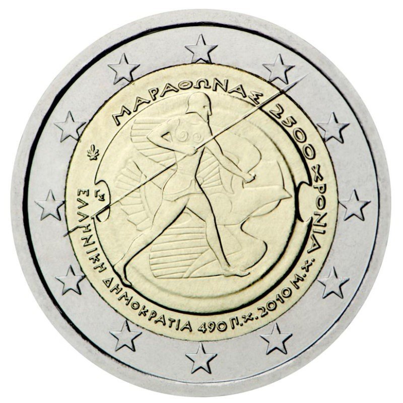 Tags: 2 Euro, 2 Euros, 2010, battle, Coin, Commemorative, Greece, marathon, UNC