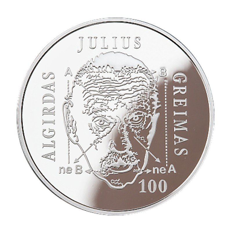Lithuania 2017 20 euro collectible silver coin, dedicated to the 100th anniversary of Algirdas Julius Greimas’s birth, in a bank box with certificate (PROOF quality)