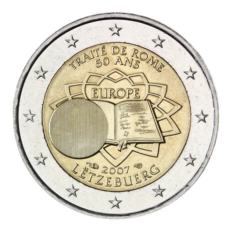 Tags: 2 Euro, 2 Euros, 2007, Coin, Commemorative, luxembourg, peace, Rome, ToR, treaty, UNC