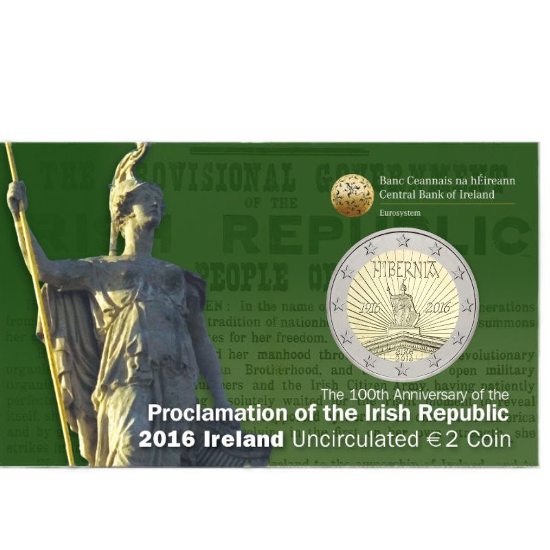Airija 2016 2 euro proginė moneta bankinėje kortelėje – Velykų sukilimo 100-metis (BU kokybė)