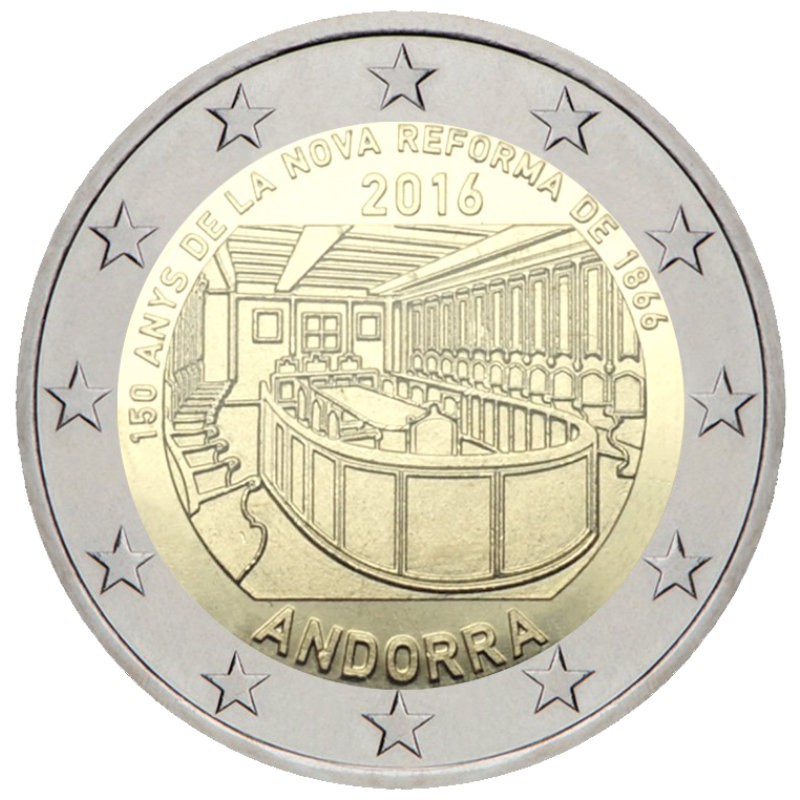 Andora 2016 2 euro proginė moneta bankinėje kortelėje – Naujoji reforma (BU kokybė)