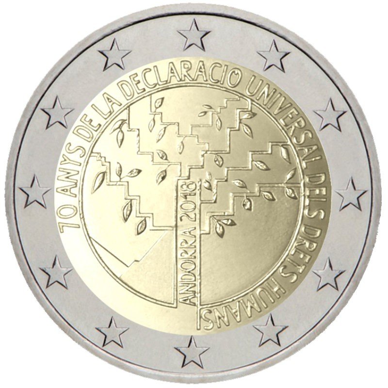 Andora 2018 2 euro proginė moneta bankinėje kortelėje – Žmogaus teisės (BU kokybė)
