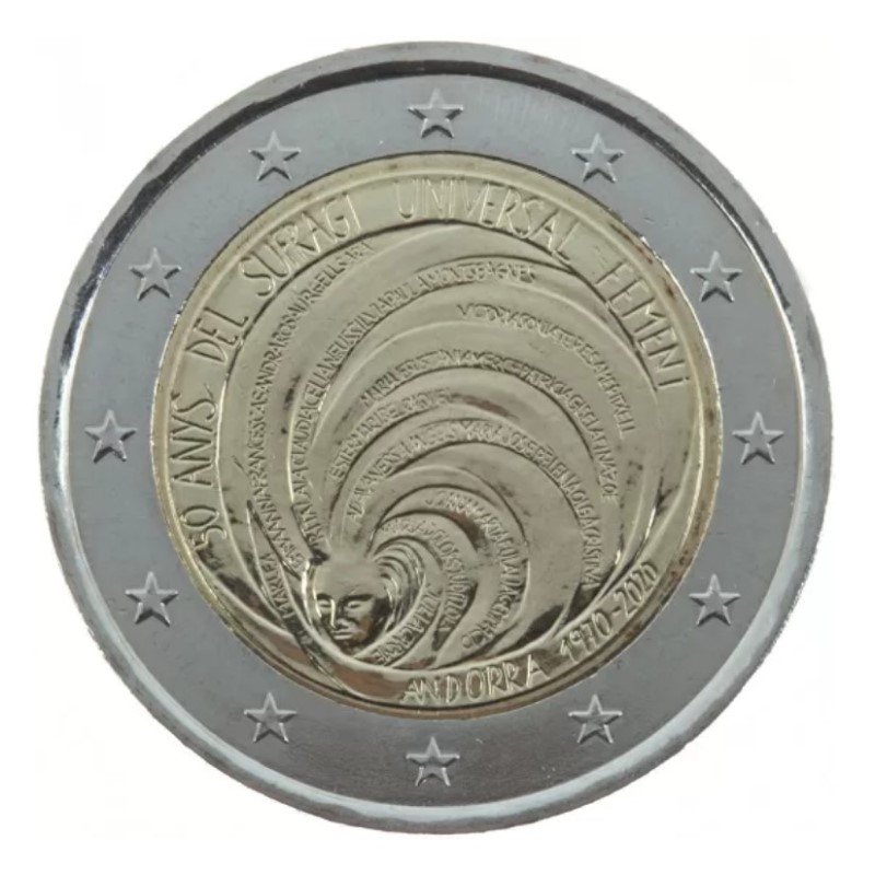 Andora 2020 2 euro proginė moneta bankinėje kortelėje – Moterų teisės (BU kokybė)
