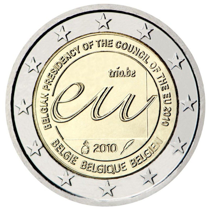 Žymos: 2 eurai, 2 euro, 2010, belgija, ES, moneta, pirmininkavimas, proginė, taryba, unc