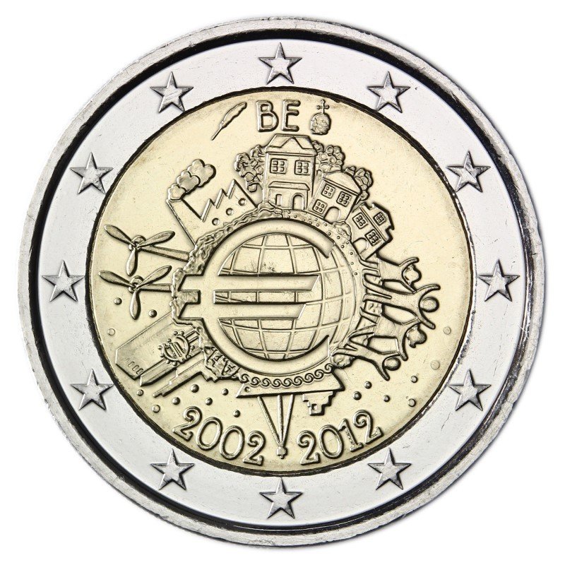 Belgija 2012 2 euro proginė moneta – 10 metų eurui (TYE)