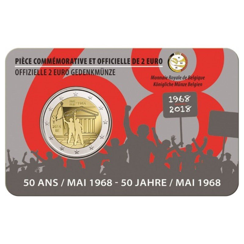 Belgija 2018 2 euro proginė moneta bankinėje kortelėje – Gegužės įvykių 50-metis (BU kokybė)