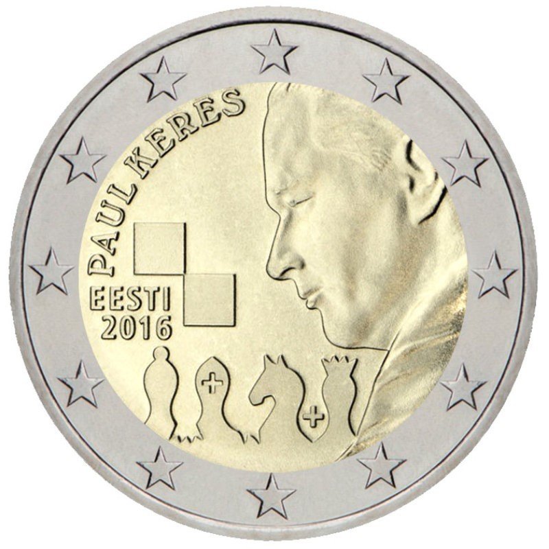 Estija 2016 2 euro proginė moneta bankinėje kortelėje – Paul Keres (BU kokybė)