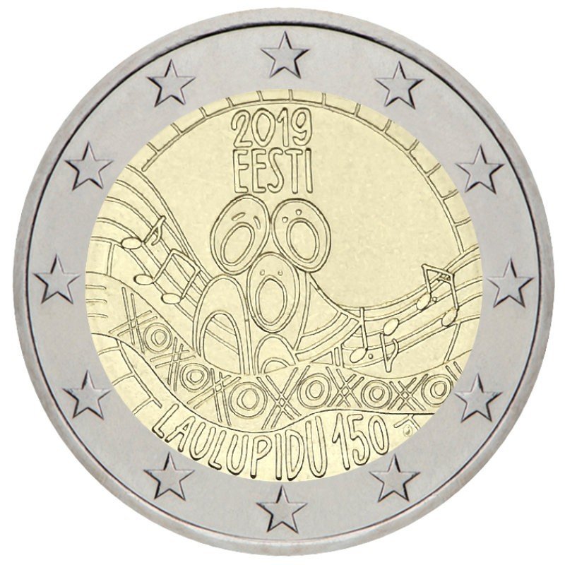 Žyma: 2 eurai, 2 euro, 2019, BU, dainų, estija, kortelė, moneta, proginė, šventė
