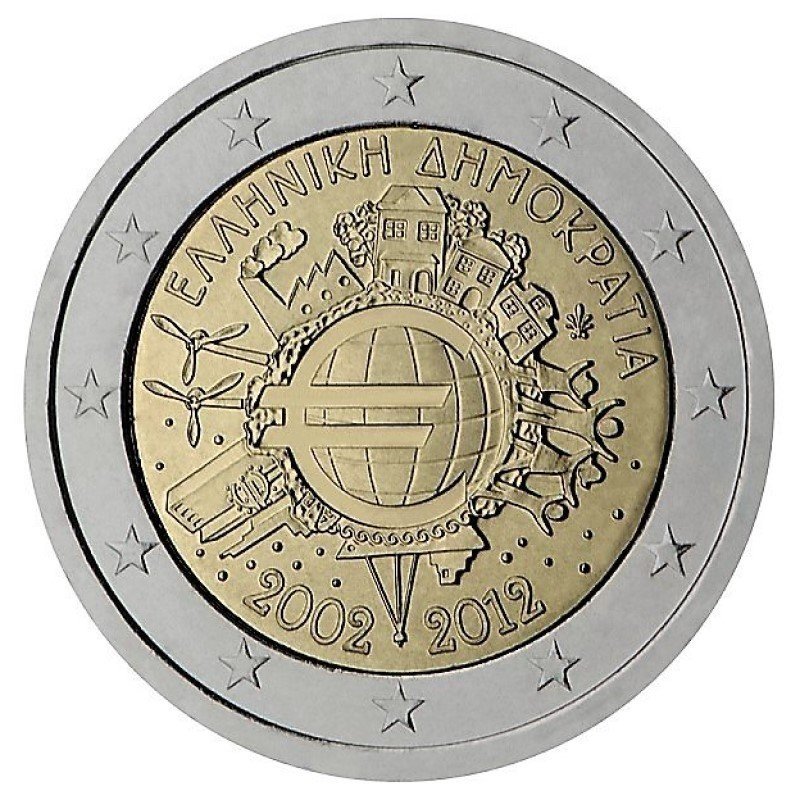 Graikija 2012 2 euro proginė moneta – 10 metų eurui (TYE)