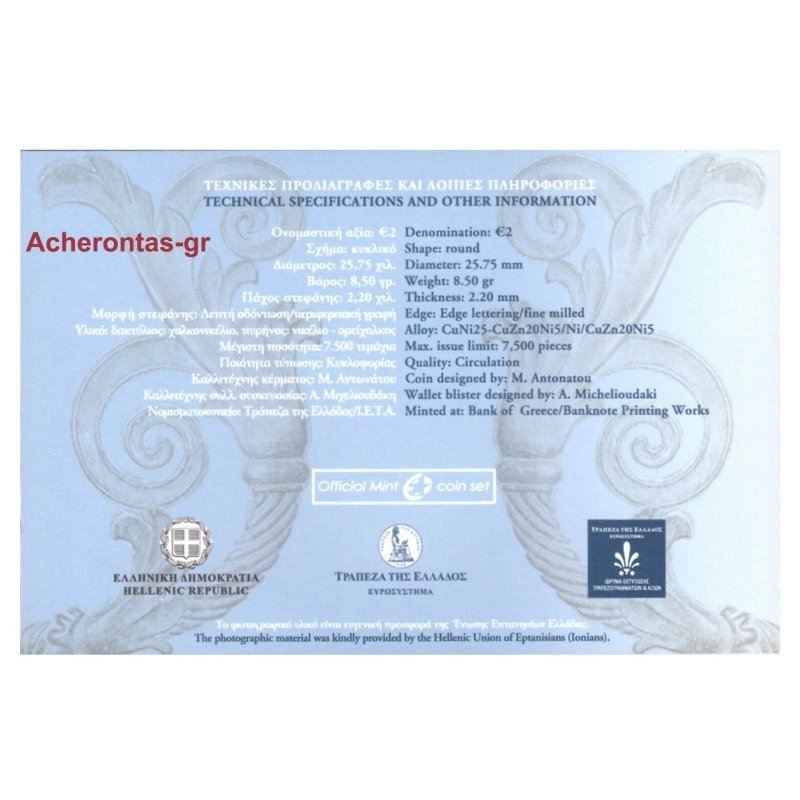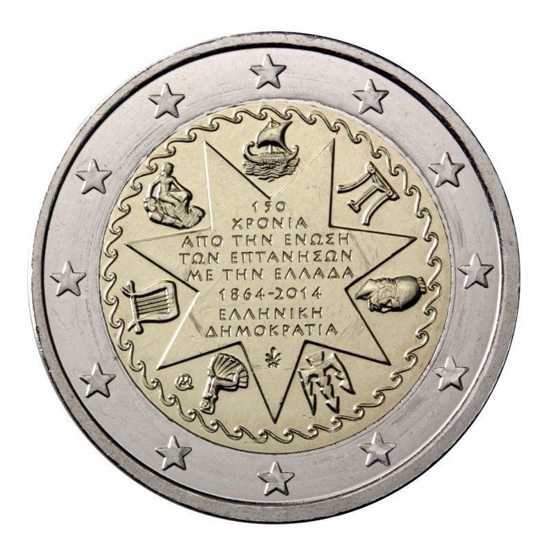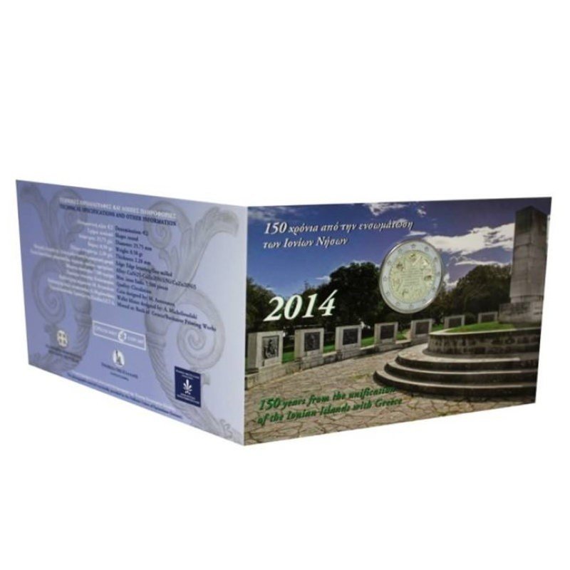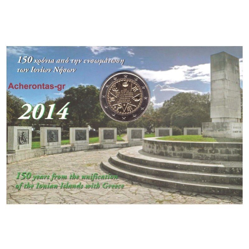 Graikija 2014 2 euro proginė moneta bankinėje kortelėje – Jonijos salų ir Graikijos sąjungos 150-metis (BU kokybė)