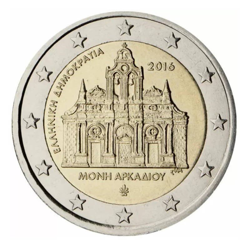 Žyma: 2 eurai, 2 euro, 2016, arkadijaus, Graikija, moneta, proginė, unc, vienuolynas