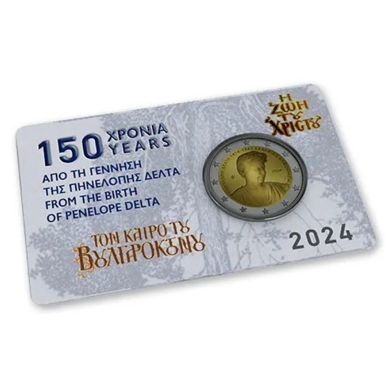 Žyma: 2 eurai, 2 euro, 2024, BU, Graikija, kortelė, moneta, moneta kortelėje, Penelopė Delta, proginė
