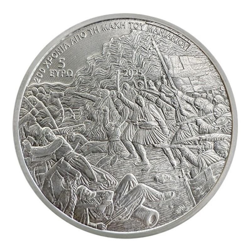 Graikija 2025 5 euro proginė sidabrinė kolekcinė moneta – 200 metų Maniakio mūšiui (PROOF)