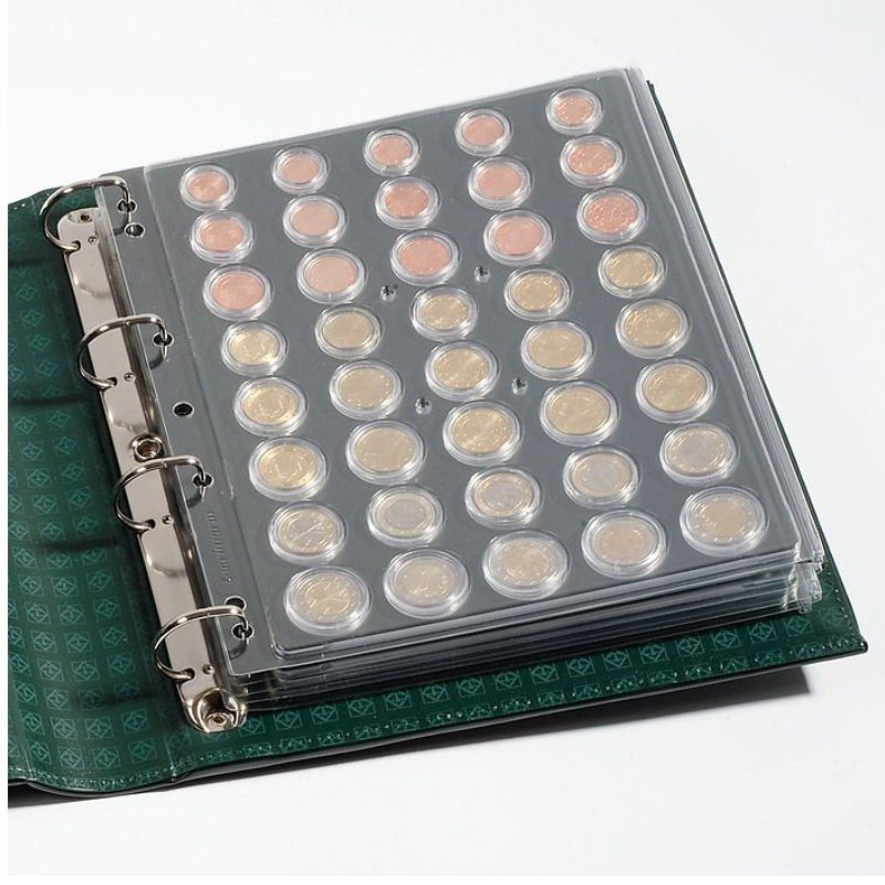 Šios įmautės yra pilnai suderinamos su Leuchtturm GRANDE albumais, todėl galite patogiai organizuoti savo kolekciją, prireikus papildyti ar pertvarkyti rinkinius. Jas itin lengva naudoti – tereikia įdėti kapsules su monetomis į tam skirtas vietas ir įsegti įmautę į albumą.