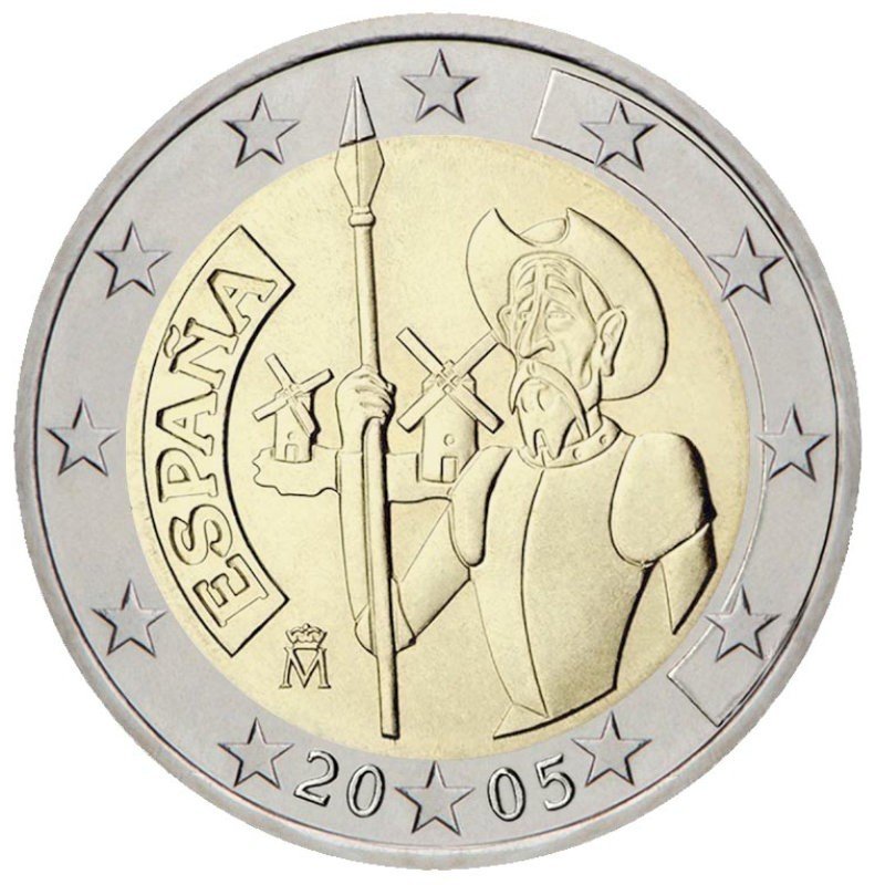Ispanija 2005 2 euro proginė moneta – Don Kichoto iš La Mančos knygos 400-metis