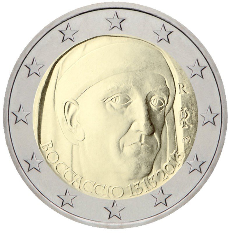 Žyma: 2 eurai, 2 euro, 2013, boccacio, giovanni, italija, moneta, proginė, unc