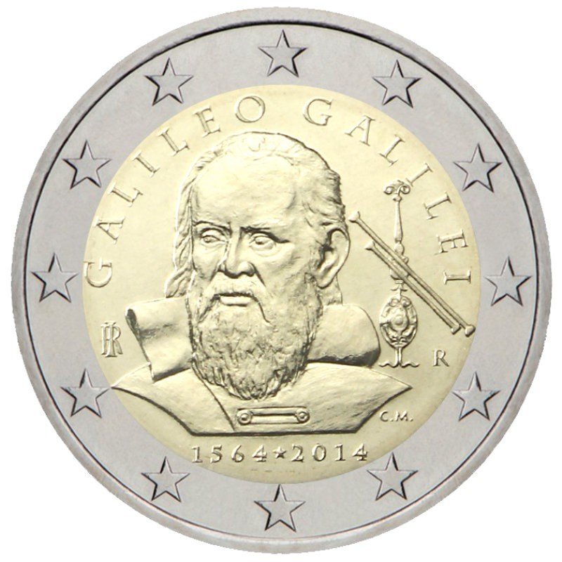 Žyma: 2 eurai, 2 euro, 2014, galilei, galileo, italija, moneta, proginė, unc