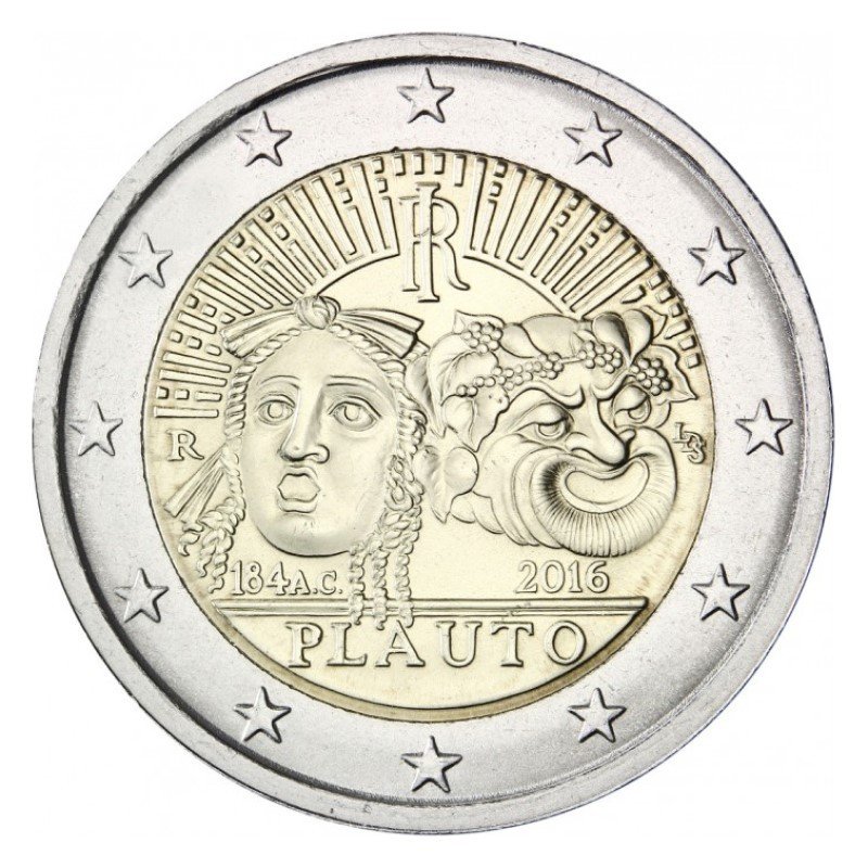 Žyma: 2 eurai, 2 euro, 2016, italija, maccius, moneta, plauto, proginė, titus, unc