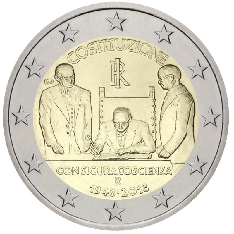 15Italija 2018 2 euro proginė moneta – Italijos Konstitucijos 70-metis