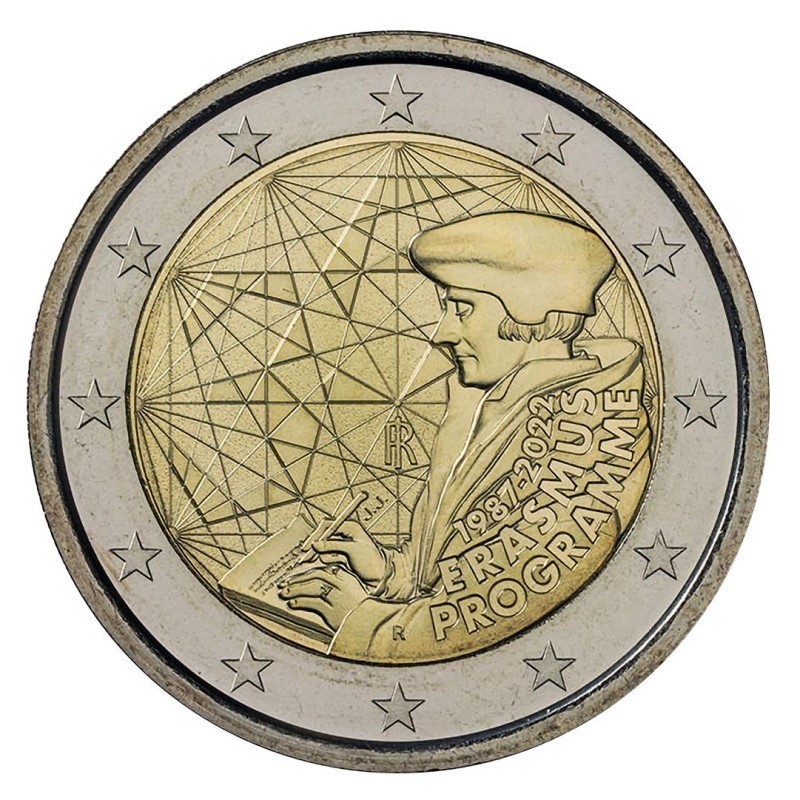 Žyma: 2 eurai, 2 euro, 2022, 35 metai, Erasmus prorama, italija, moneta, proginė, unc