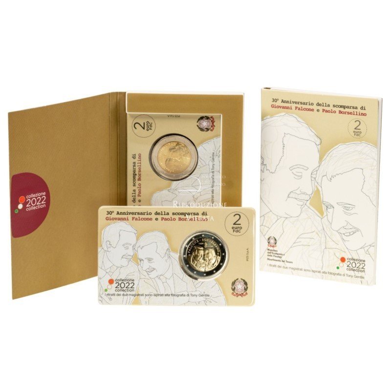Žyma: 2 eurai, 2 euro, 2022, BU, Giovanni Falcone, italija, kortelė, moneta, Paolo Borsellino, proginė