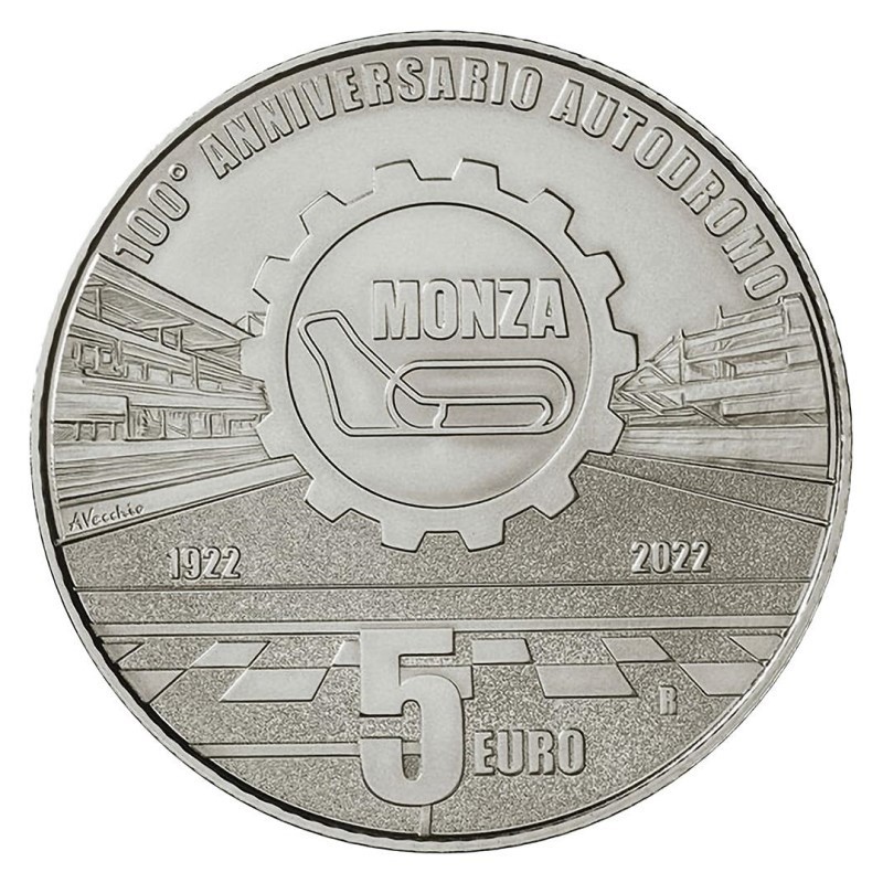 Žyma: 100 metų, 2022, 5 euro, BU, italija, kolekcinė, moneta, Monza, Monzos trasa, sidabras, sidabrinė