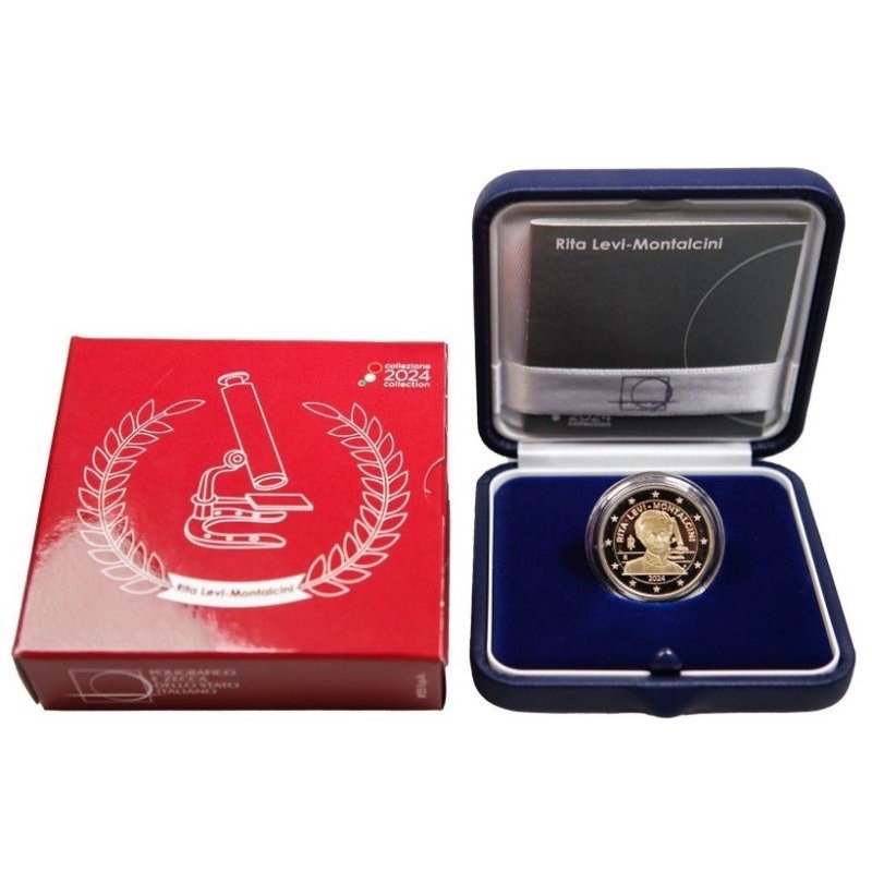 Žyma: 2 eurai, 2 euro, 2024, italija, moneta, moneta dėžutėje, proginė, proof, Rita Levi-Montalcini