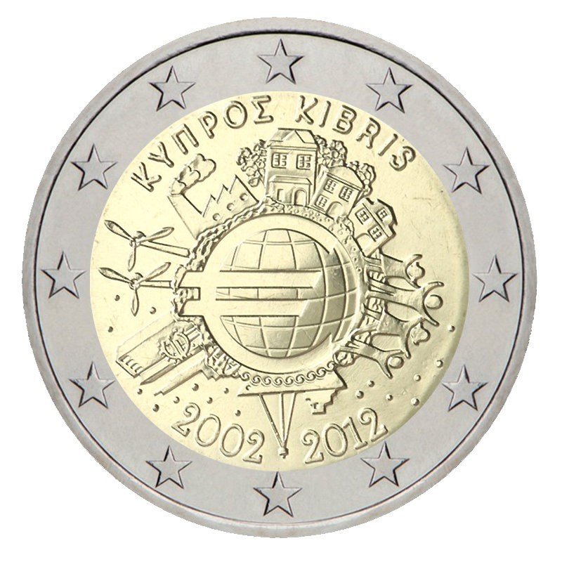Kipras 2012 2 euro proginė moneta – 10 metų eurui (TYE)
