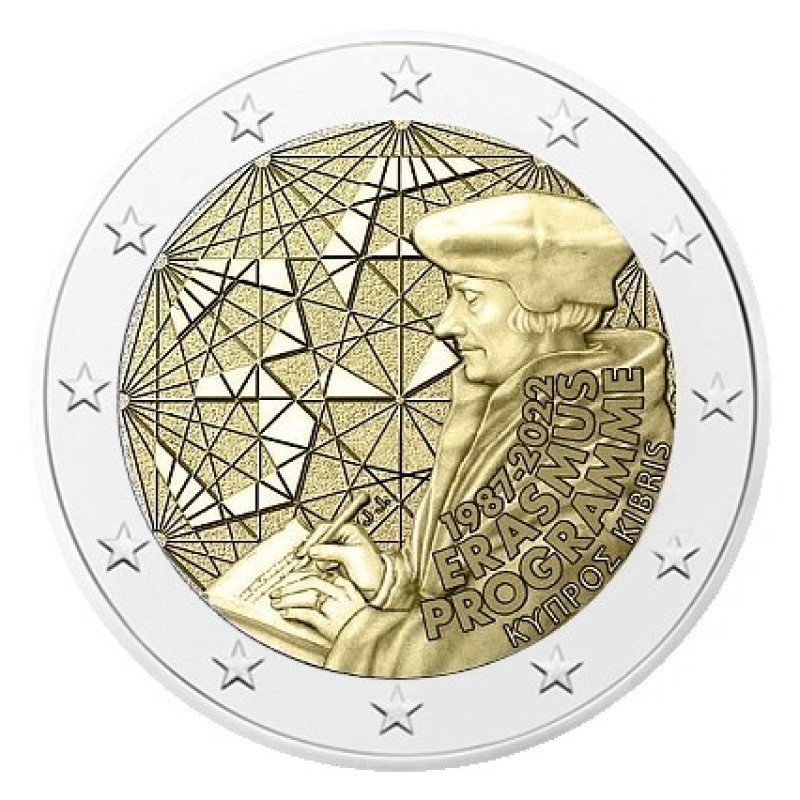 Žyma: 2 eurai, 2 euro, 2022, 35 metai, Erasmus prorama, kipras, moneta, proginė, unc