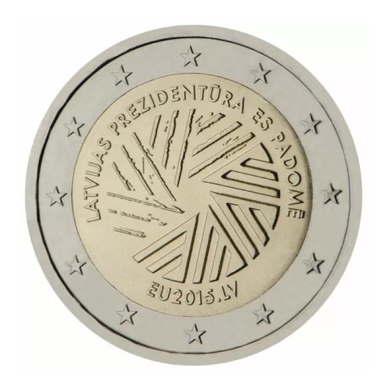 Žyma: 2 eurai, 2 euro, 2015, ES, latvija, moneta, pirmininkavimas, proginė, taryba, unc
