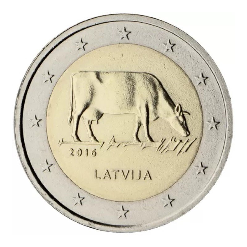 Žyma: 2 eurai, 2 euro, 2015, karvė, latvija, latvijos, moneta, proginė, ūkis, unc, žemės