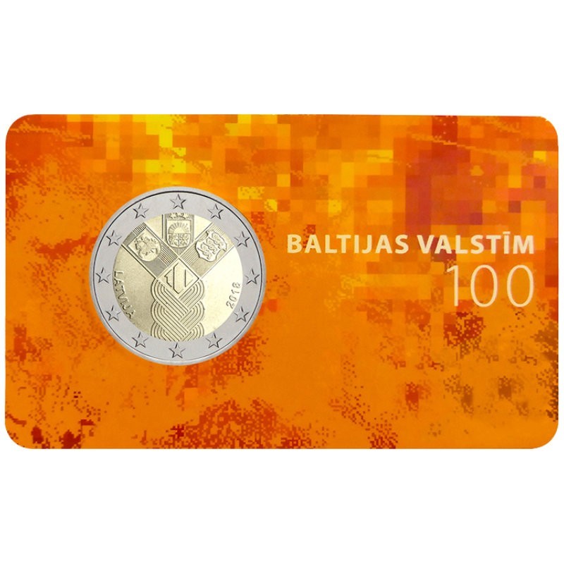 Latvija 2018 2 euro proginė moneta kortelėje – Baltijos valstybių nepriklausomybės 100-metis (BU)
