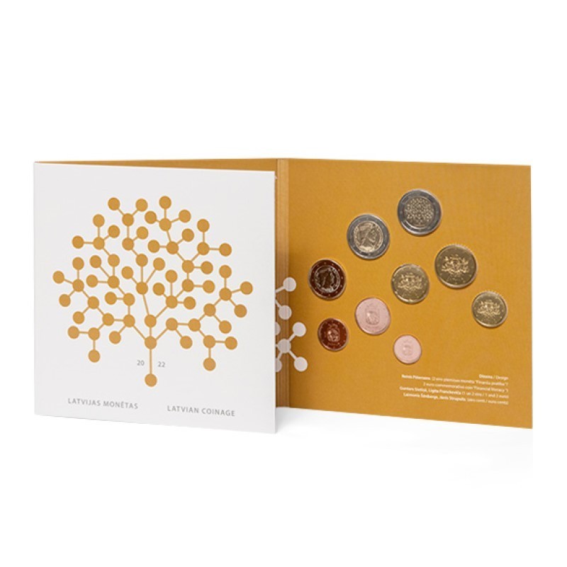 Žyma: 2 eurai, 2 euro, 2022, bankinis rinkinys, BU, euro monetos, finansinis raštingumas, latvija, moneta, oficialus, proginė