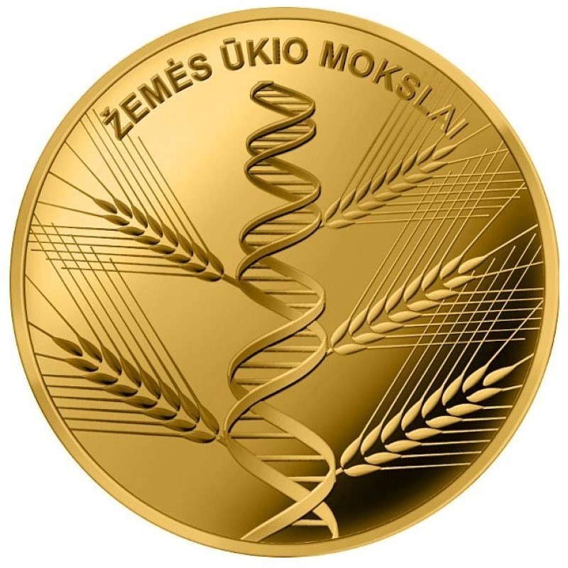 Žyma: 2020, 5 eurai, 5 euro, Au999, auksas, kolekcinė, Lietuva, mokslas, moneta, proof, žemės ūkio mokslai, Žemės ūkis