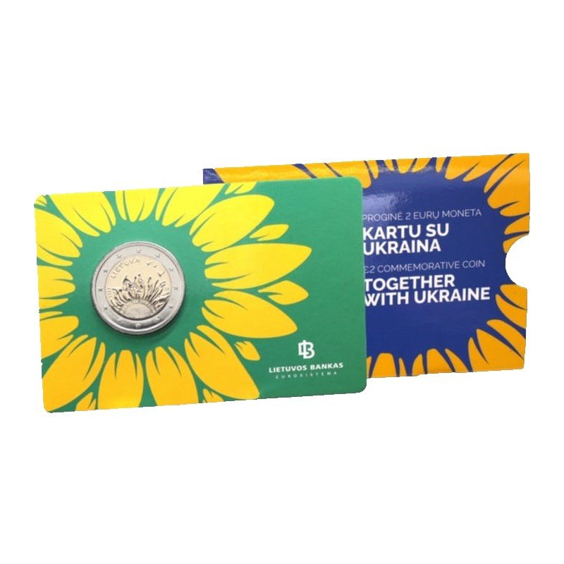 Lietuva 2023 2 euro proginė moneta bankinėje kortelėje – Kartu su Ukraina (BU kokybė)