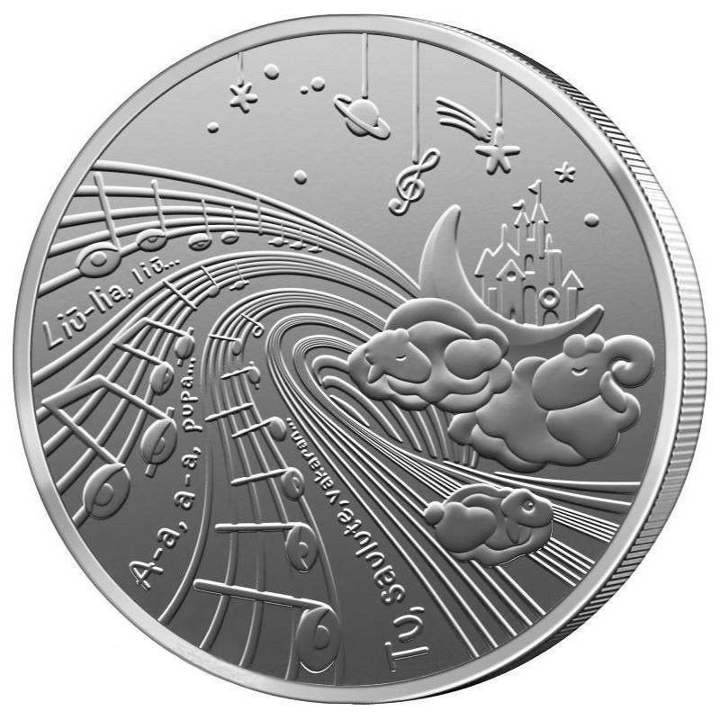 Žymos: 1.5 euro, 2025, kolekcinė, Lietuva, lietuviškos pasakos, Lopšinė, moneta, pusantrokas, unc