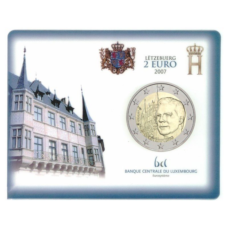 Žymos: 2 eurai, 2 euro, 2007, BU, didysis, kortelė, kunigaikštis, liuksemburgas, moneta, proginė, rūmai