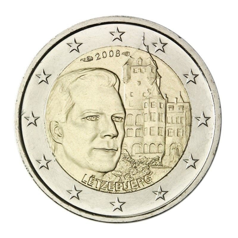 Žyma: 2 eurai, 2 euro, 2008, berg, chateau, de, didysis, henri, kunigaikštis, liuksemburgas, moneta, proginė, residencija, unc
