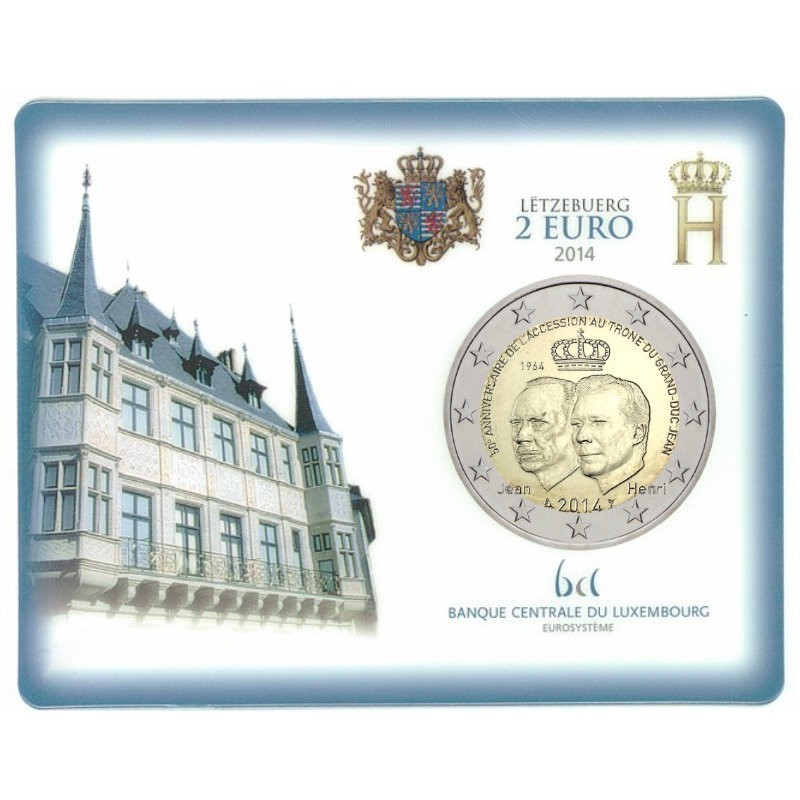 Liuksemburgo 2014 2 eurų proginė moneta bankinėje kortelėje – Didžiojo kunigaikščio Jean karūnavimo 50-metis (BU kokybė)