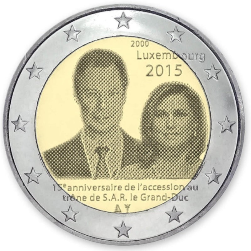 Žyma: 2 eurai, 2 euro, 2015, BU, didysis, foto, henri, holograma, kortelė, kunigaikštis, liuksemburgas, moneta, nuotrauka, proginė, sostas
