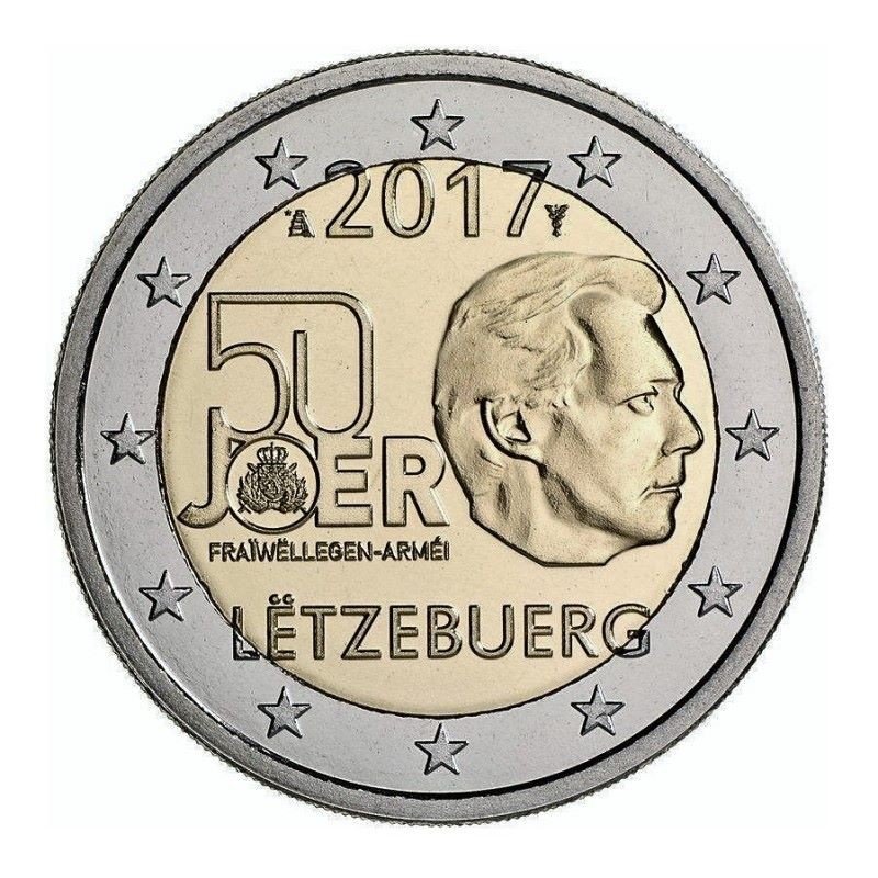 Liuksemburgas 2017 2 euro proginė moneta – Kariuomenės savanoriškumo principo 50-metis