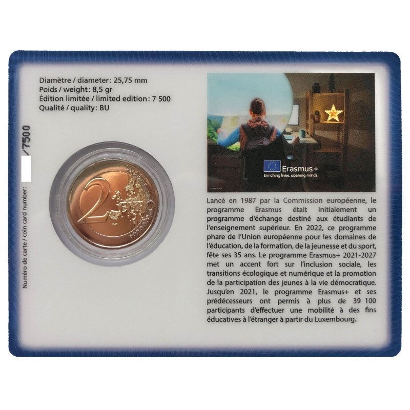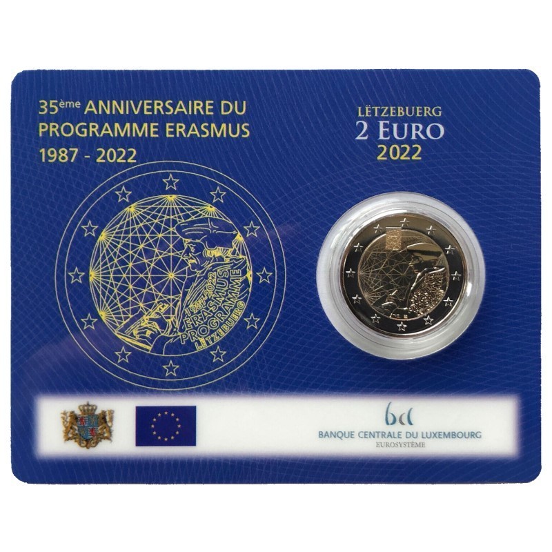 Liuksemburgas 2022 2 euro proginė moneta bankinėje kortelėje – 35 metai Erasmus programai (BU kokybė)