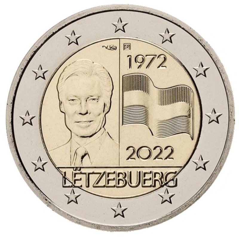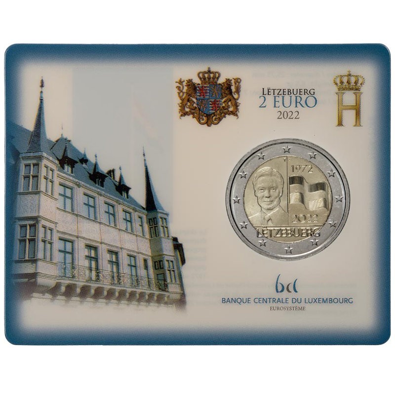 Liuksemburgas 2022 2 euro proginė moneta bankinėje kortelėje – 50 metų Liuksemburgo vėliavai (BU kokybė)