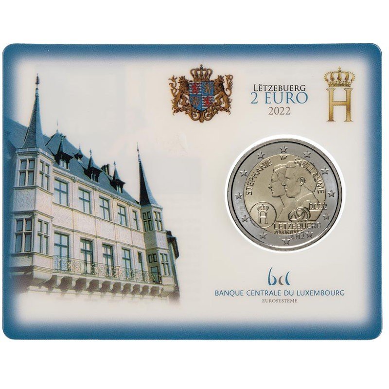 Liuksemburgas 2022 2 euro proginė moneta bankinėje kortelėje – 10-osios vestuvių metinės (BU kokybė)