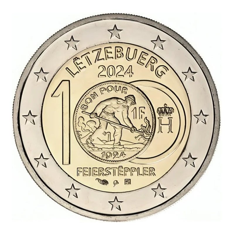 Žyma: 2 eurai, 2 euro, 2 euro moneta, 2024, frankas, frankų simbolis, Liejyklos darbininkas, liuksemburgas, moneta, proginė, unc