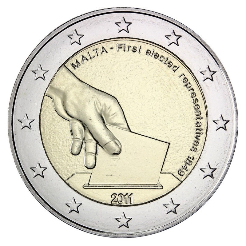 Žyma: 2 eurai, 2 euro, 2011, malta, moneta, pirmieji, proginė, rinkimai, unc